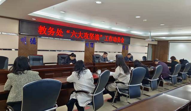 2月28日下午,教务处在行政楼四楼会议室召开“六大攻坚战”工作动员部署会,教务处全体成员参加会议。