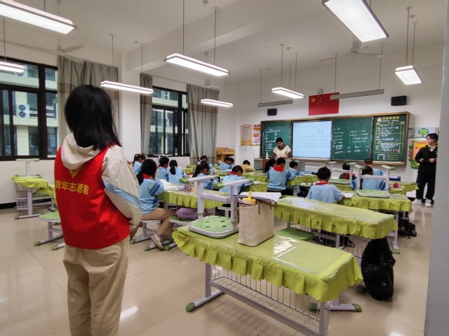 “在这个来自不同年龄不同年级的大班级里,孩子们的知识层面和学习能力也各不相同,但热爱中华传统文化的心,却在一片诵读声中传达出来。”志愿者杨思彤对此深有感触。