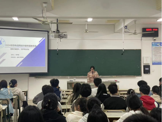 024年3月11-3月17日,我院开展了为期一周的防诈骗专题教育。通过党委副书记上专题课、发放防诈骗告知书、学生骨干深入学生社区宣讲校园诈骗案例以及线下测试卷等方式进行“再教育”,集中培训,强化防诈知识。