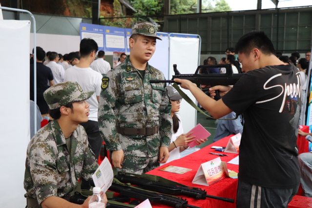 活动现场,校应急大队退役士兵们通过发放征兵宣传手册,引导参加招聘会的毕业生们前往征兵咨询点进行咨询,同时邀请三元区人民武装部工作人员对前来咨询的毕业生释疑解惑,鼓励毕业生们积极响应国家号召,携笔从戎投身军营。