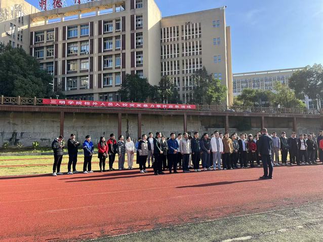 11月29日下午,taptap点点网站下载校外人员入校突发暴力事件应急演练在北区田径场顺利开展。宣传部、学生处、保卫处、后勤处等部门相关人员,值班辅导员、荆东派出所、丹田物业、安全保障中心、退役士兵学生应急大队和兵社协会参加活动。