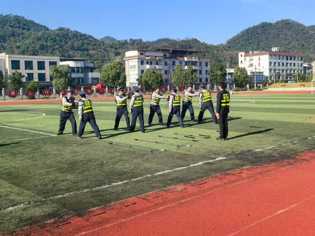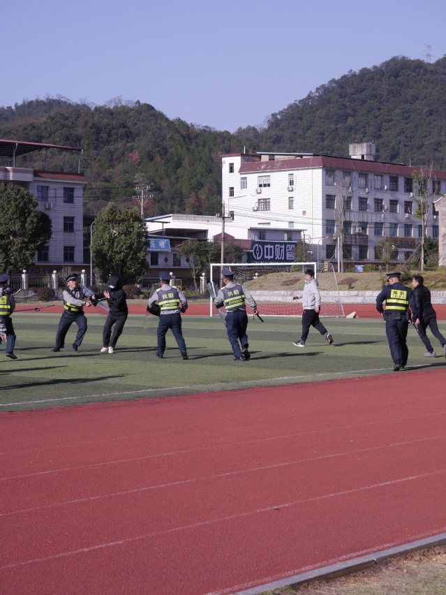 本次演练由防暴技战术展示和突发事件处置实战演练两部分组成。安保队员率先进行了防暴基础动作演示,该演示充分展现出安保人员的战斗力与良好精神风貌。突发事件演练根据事先设置好的背景情节进行实战演练,保卫处工作人员及安保队员根据突发事件应急预案,迅速出动,及时增援,通过有效的战术防御、控制阵型及协同配合,最终将“不法分子”成功擒获。
