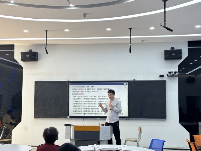 刘峰老师对撰写学术论文、进行学术研究的主要目的、基本准则、大体流程等做详细的介绍,同时以日本国族主义、亚洲主义等问题的研究为例,对学术考察的前期准备、既往研究的查阅整理、问题意识的汇总阐明、选题框架的思考设计等展开具体的思考和阐述。作为多部核心期刊的评审专家,刘峰老师向大家分享了在论文评审中的经验和体会,提出了学术论文写作的范式和建议,具有很强的实用性。