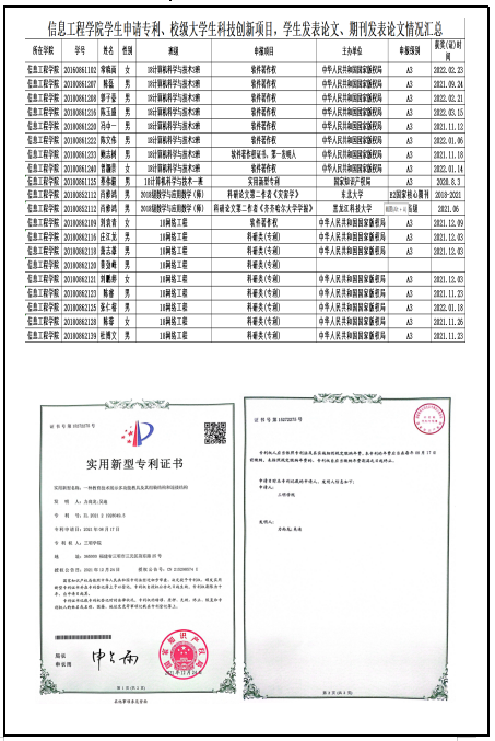 2.创新意识培养有成效。学生申请专利16项,校级大学生科技创新项目21项,学生发表论文多篇,其中学生首次在国际重要期刊发表论文1篇,学生的创新意识和创新精神不断提升。