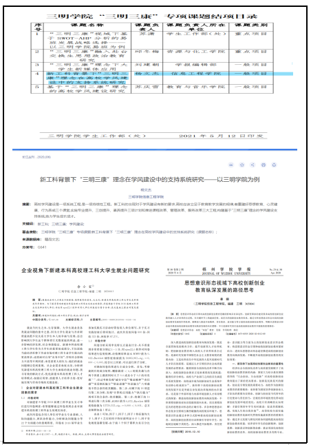 1.项目推进育人工作研究有成效。近两年,依托项目的开展,完成“三明三康”专项课题1项,发表“三明三康”教育研究论文4篇,形成《“三·三”模式:党员教育管理精细化》等校级“三明三康”优秀育人工作案例4个。